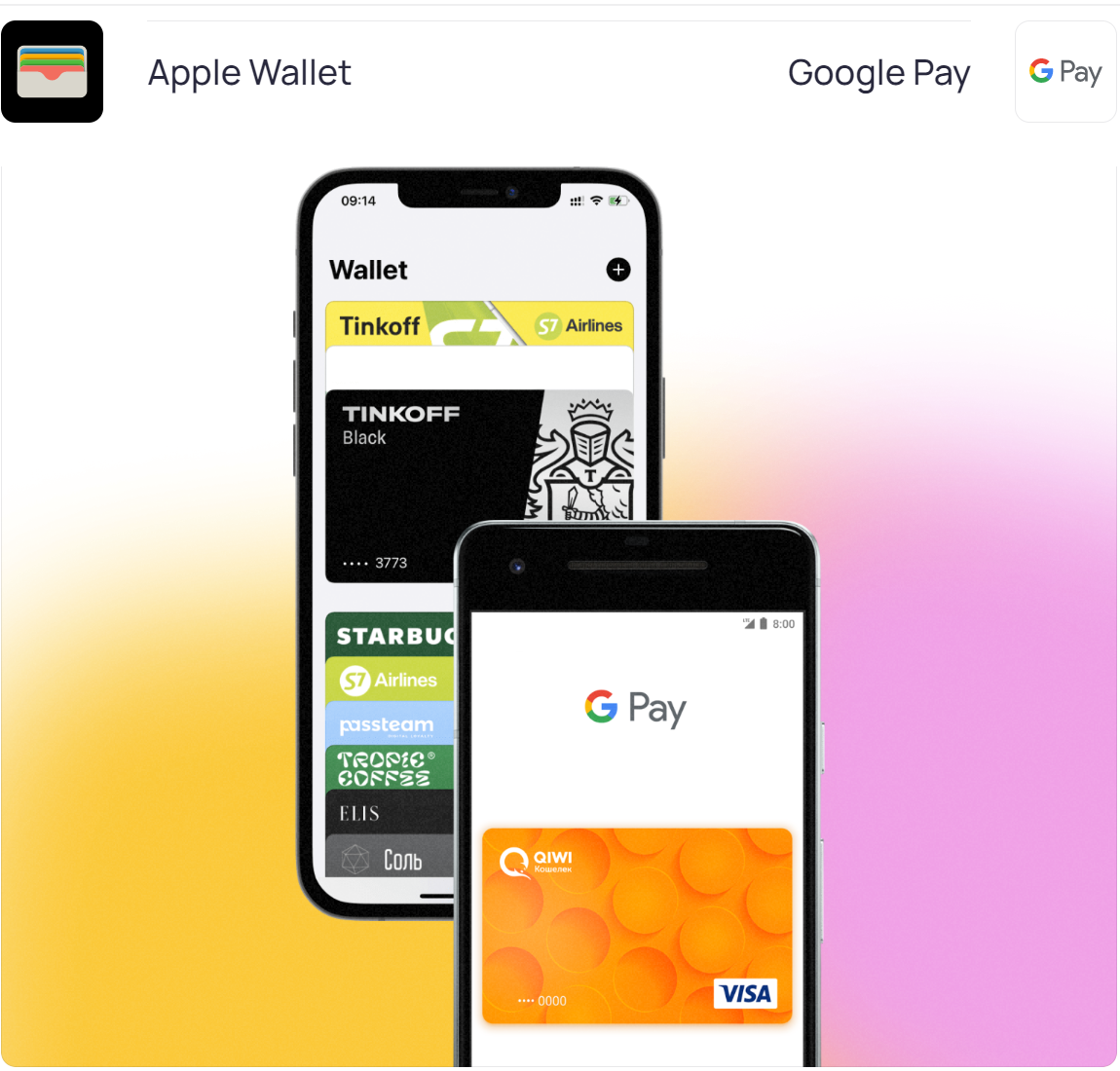 Cards installed in the pre-installed Apple Wallet and Google Play