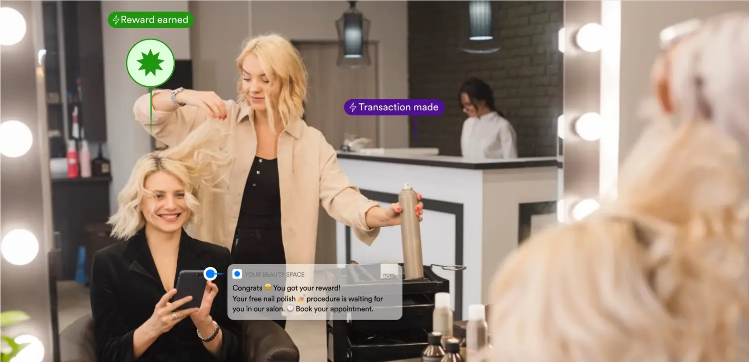 Automatic PUSH notifications within 330 feet of your business locations. Displayed on loyalty cardholders' lock screen.